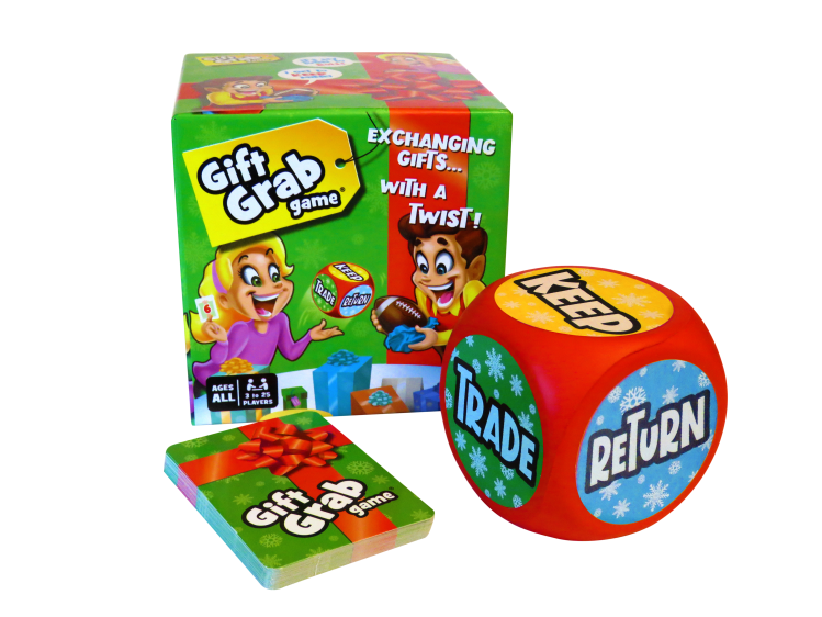 The Gift Grab Game adds excitement and chance to your holiday gift exchange! Toss the giant foam die to see if you get to KEEP your gift, TRADE it, or RETURN it back to the table! Discover a whole new way to exchange gifts with family, friends, or co-workers!